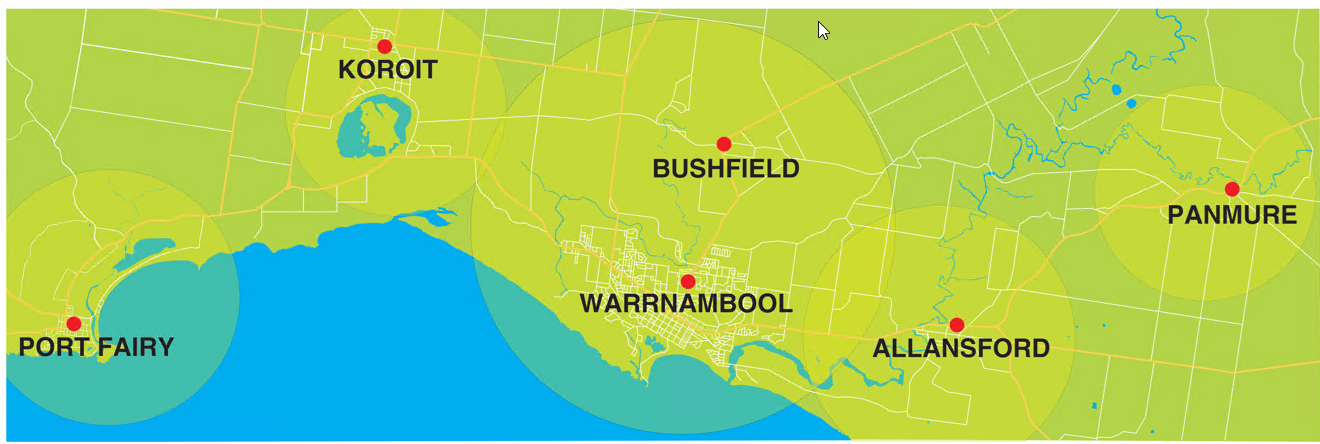 Warrnambool, Allansford, Port Fairy, Koroit, Killarney, Bushfield, Yambuk, Panmure